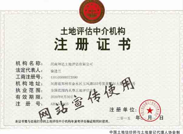 經中國土地估價師與土地登記代理人協會審批,河南坤達土地評估公司資質榮升全國執業,這是公司實力的見證,是各位領導、合作單位共同的關懷的喜事。